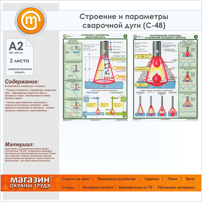 Плакаты «Строение и параметры сварочной дуги» (С-48, ламинированная бумага, А2, 2 листа) в Бердске купить