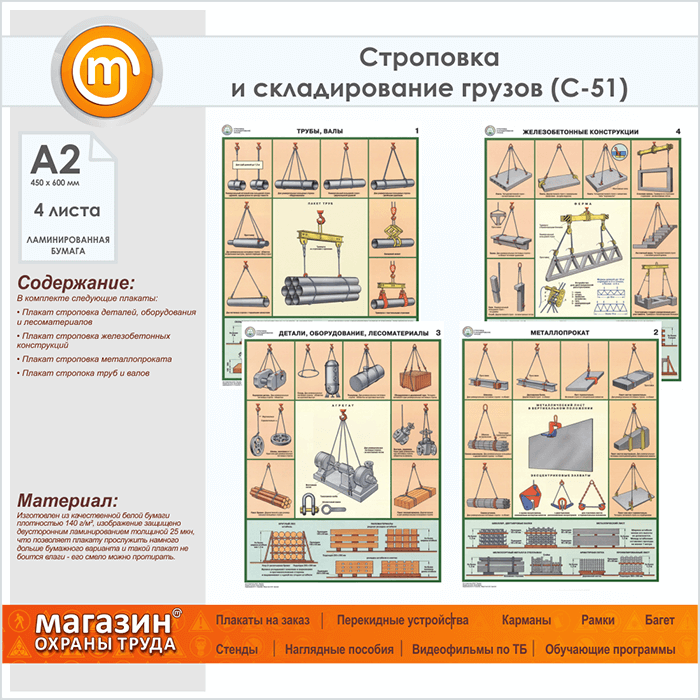 Плакаты «Строповка и складирование грузов» (С-51, ламинированная бумага, А2, 4 листа) в Бердске купить