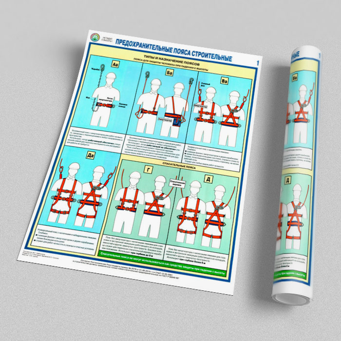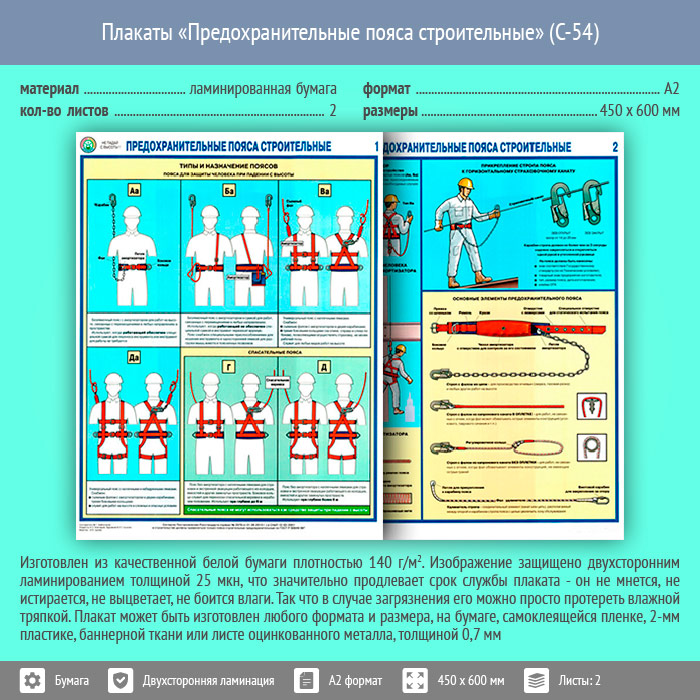 Плакаты «Предохранительные пояса строительные» (С-54, ламинированная бумага, А2, 2 листа) в Бердске купить