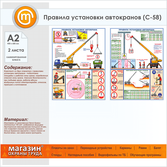 Плакаты «Правила установки автокранов» (С-58, ламинированная бумага, А2, 2 листа) в Бердске купить