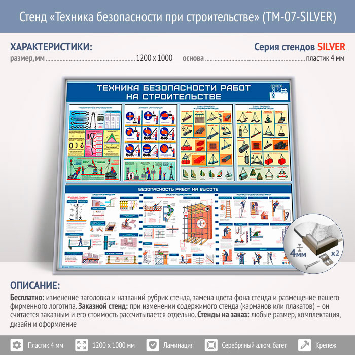 Стенд «Техника безопасности при строительстве» (TM-07-SILVER) в Бердске купить