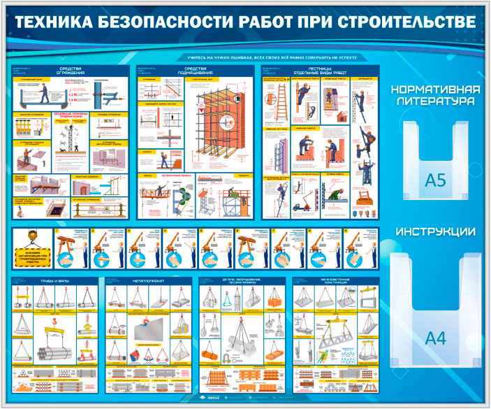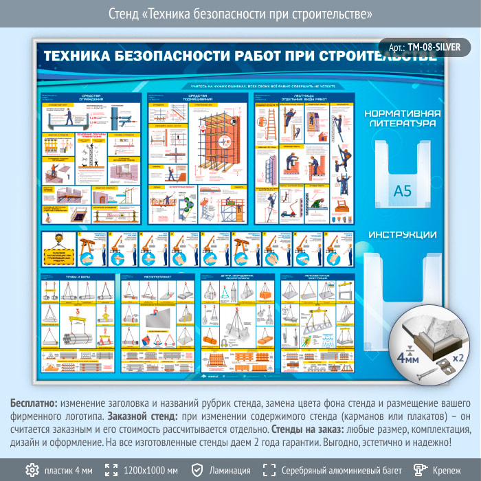 Стенд «Техника безопасности при строительстве» с 2 объемными карманами (TM-08-SILVER) в Бердске купить