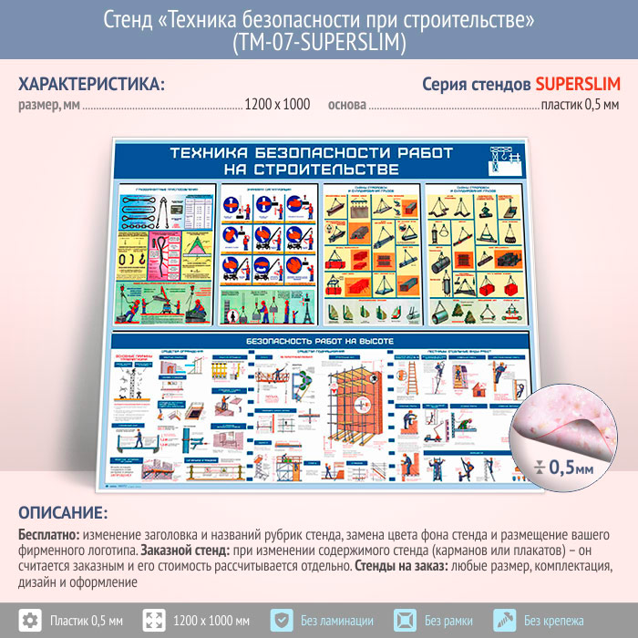 Стенд «Техника безопасности при строительстве» (TM-07-SUPERSLIM) в Бердске купить