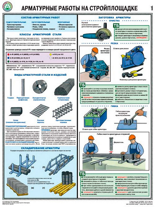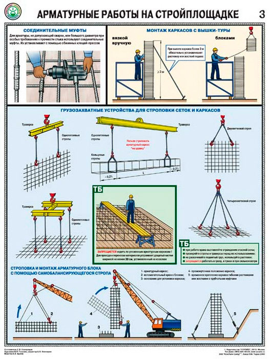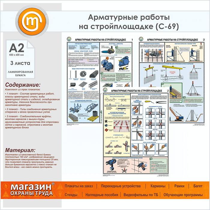 Плакаты «Арматурные работы на стройплощадке» (С-69, ламинированная бумага, А2, 3 листа) в Бердске купить