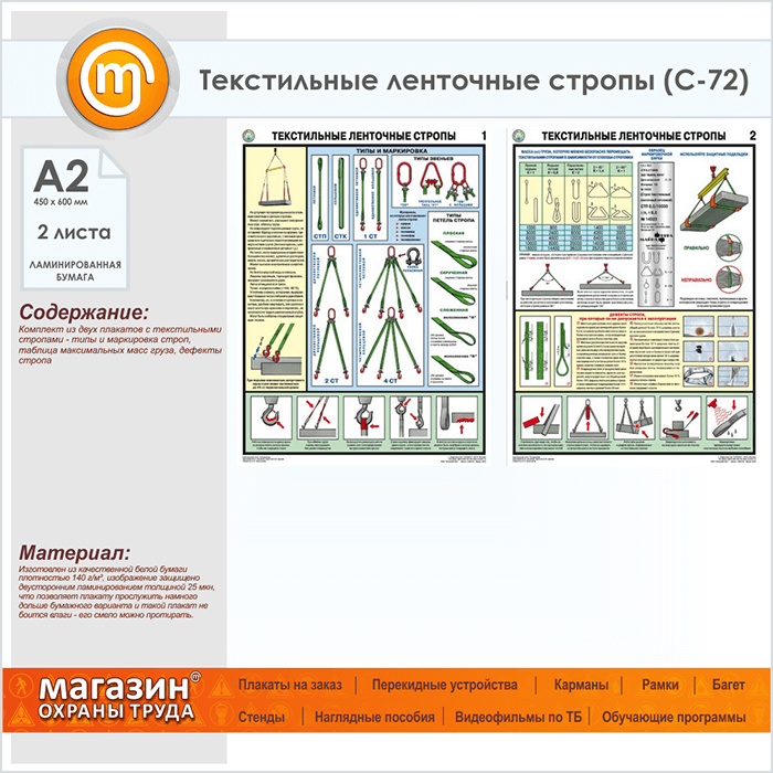 Плакаты «Текстильные ленточные стропы» (С-72, ламинированная бумага, А2, 2 листа) в Бердске купить