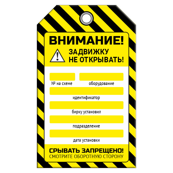 Бирка «ЗАДВИЖКУ НЕ ОТКРЫВАТЬ!» (1 шт., двусторонняя, пластик, 70х115 мм) в Бердске купить