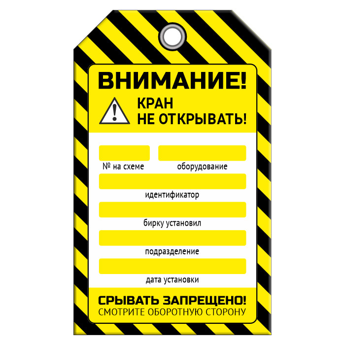 | Надпись: | «КРАН НЕ ОТКРЫВАТЬ!» |