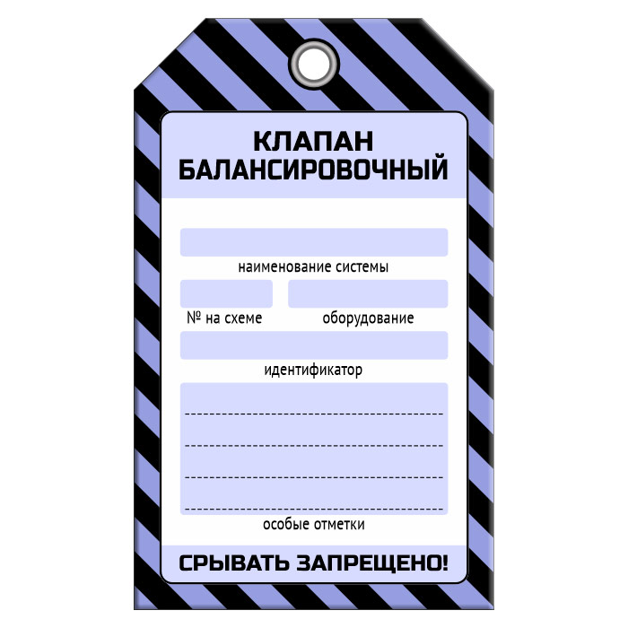 Бирка «КЛАПАН БАЛАНСИРОВОЧНЫЙ» (1 шт., односторонняя, пластик, 70х115 мм) в Бердске купить