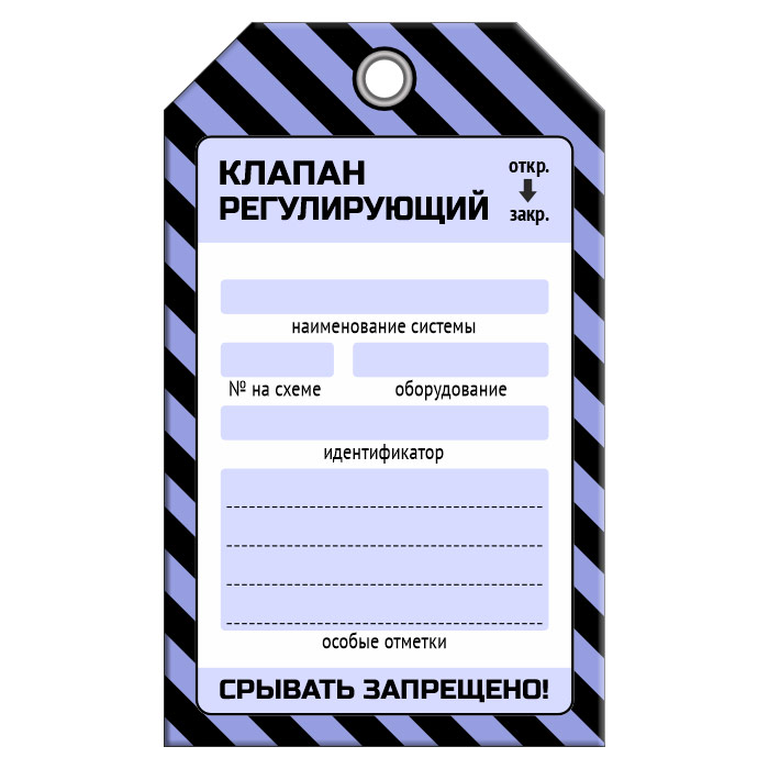 Бирка «КЛАПАН РЕГУЛИРУЮЩИЙ» (1 шт., односторонняя, пластик, 70х115 мм) в Бердске купить