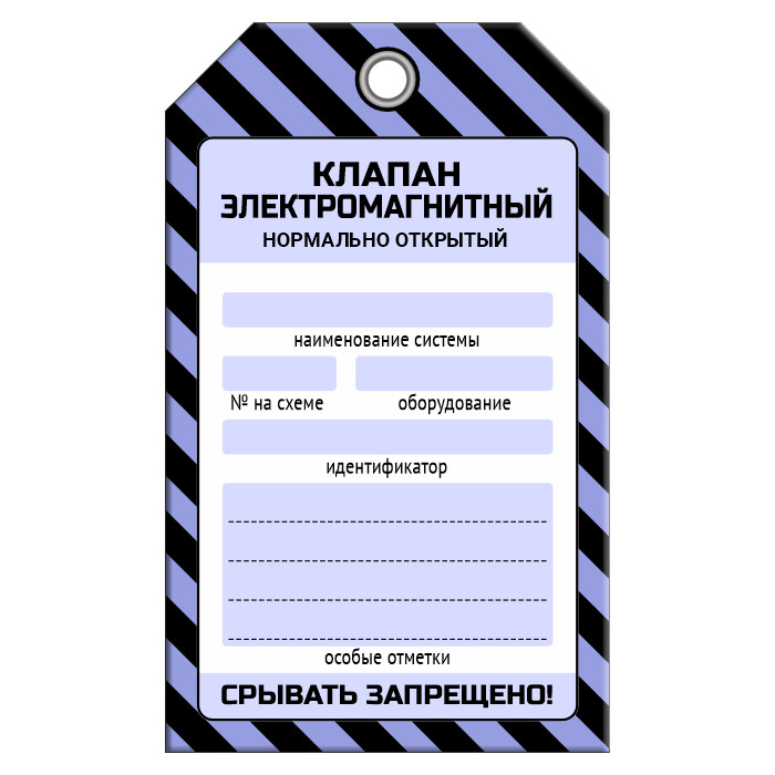 Бирка «КЛАПАН ЭЛЕКТРОМАГНИТНЫЙ НОРМАЛЬНО ОТКРЫТЫЙ» (1 шт., односторонняя, пластик, 70х115 мм) в Бердске купить
