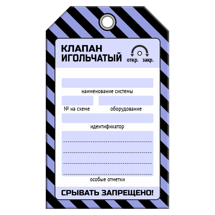 Бирка «КЛАПАН ИГОЛЬЧАТЫЙ» (1 шт., односторонняя, пластик, 70х115 мм) в Бердске купить