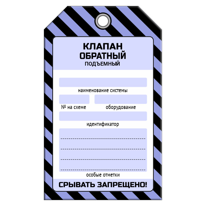 Бирка «КЛАПАН ОБРАТНЫЙ ПОДЪЕМНЫЙ» (1 шт., односторонняя, пластик, 70х115 мм) в Бердске купить