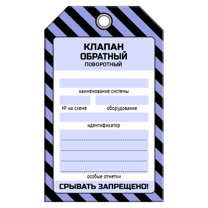 Бирка «КЛАПАН ОБРАТНЫЙ ПОВОРОТНЫЙ» (1 шт., односторонняя, пластик, 70х115 мм) в Бердске купить