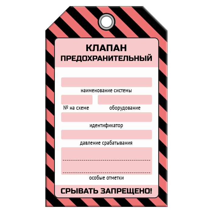 Бирка «КЛАПАН ПРЕДОХРАНИТЕЛЬНЫЙ» (1 шт., односторонняя, пластик, 70х115 мм) в Бердске купить