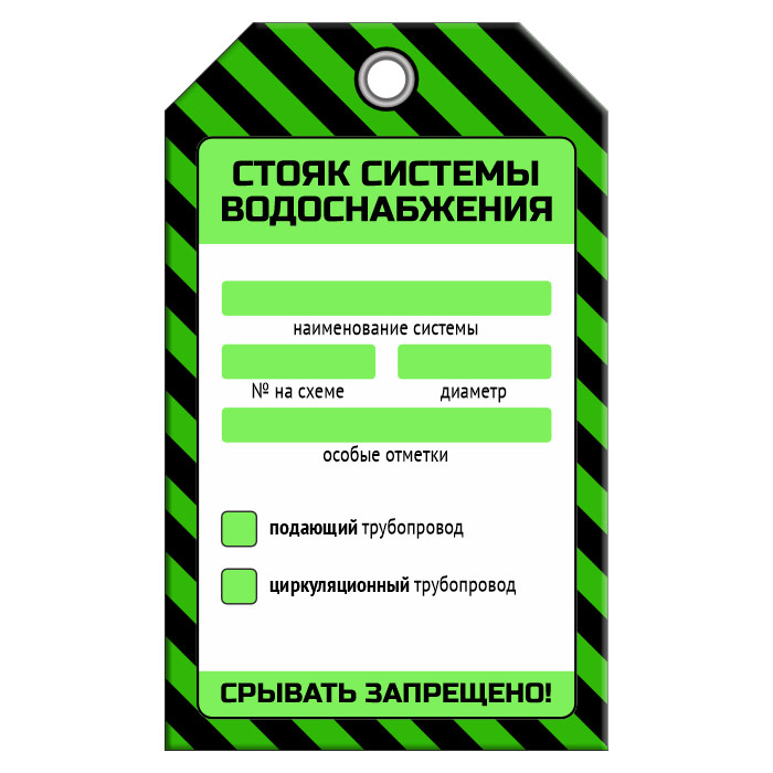 Бирка «СТОЯК СИСТЕМЫ ВОДОСНАБЖЕНИЯ» (1 шт., односторонняя, пластик, 70х115 мм) в Бердске купить