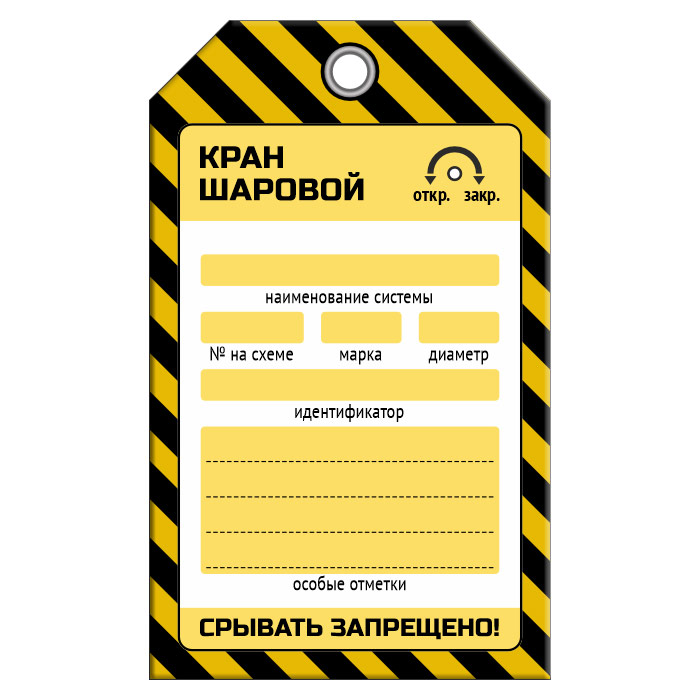 Бирка «КРАН ШАРОВОЙ» для газопровода (1 шт., односторонняя, пластик, 70х115 мм) в Бердске купить
