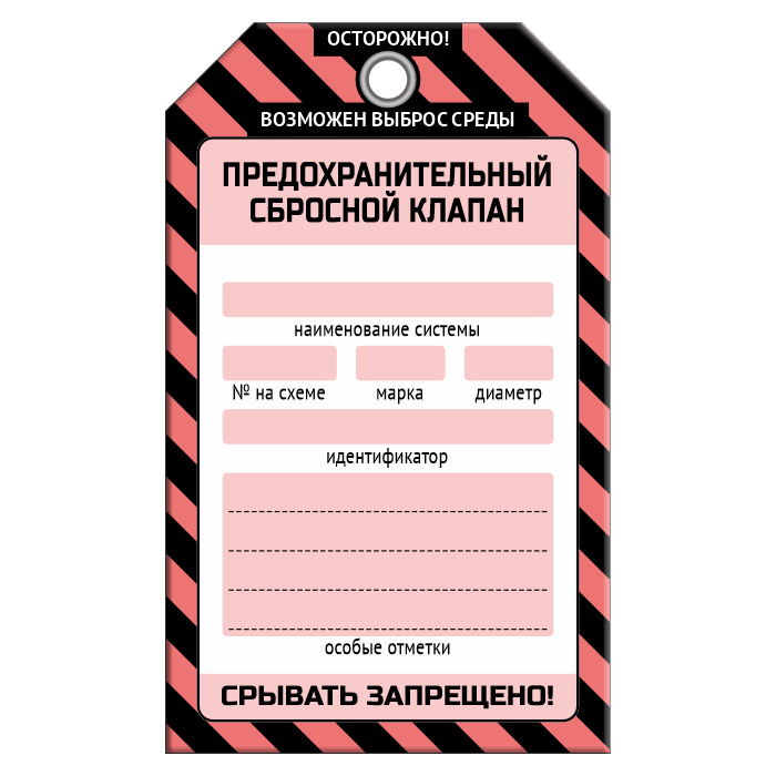 Бирка «ПРЕДОХРАНИТЕЛЬНЫЙ СБРОСНОЙ КЛАПАН» (1 шт., односторонняя, пластик, 70х115 мм) в Бердске купить