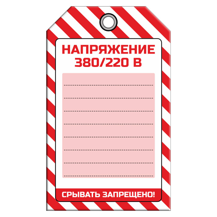 Бирка «НАПРЯЖЕНИЕ 380/220 В» (1 шт., односторонняя, пластик, 70х115 мм) в Бердске купить