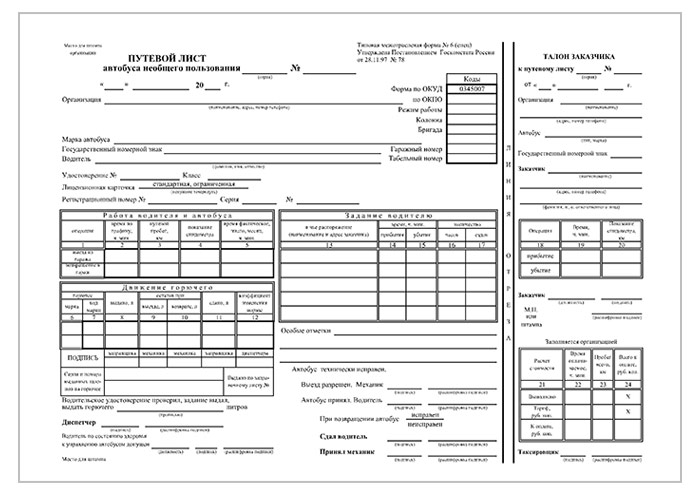 Путевой лист автобуса (форма № 6, упаковка из 100 штук) в Бердске купить