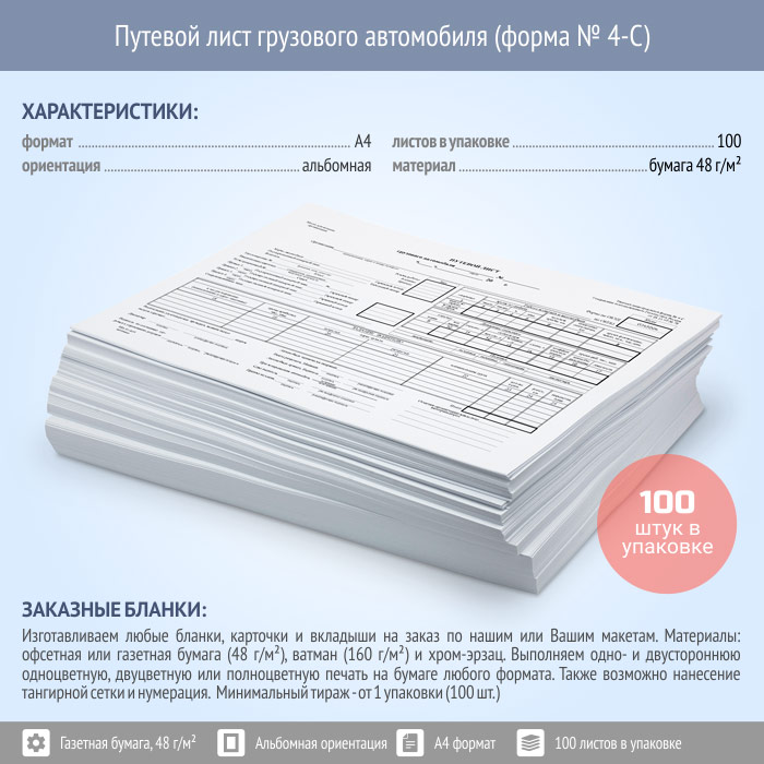 Путевой лист грузового автомобиля (форма № 4-С, упаковка из 100 штук) в Бердске купить