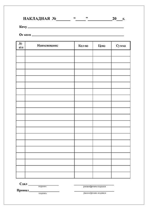 Накладная (упаковка из 100 штук) в Бердске купить