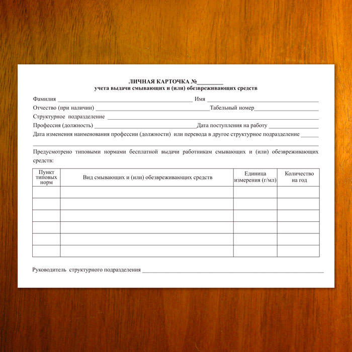 Личная карточка учёта выдачи смывающих и (или) обезвреживающих средств (упаковка из 100 штук) в Бердске купить