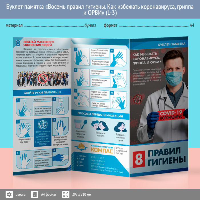 Буклет-памятка «Восемь правил гигиены. Как избежать коронавируса, гриппа и ОРВИ» (L-3) в Бердске купить