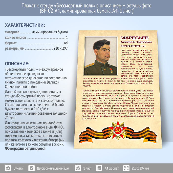 Плакат к стенду «Бессмертный полк» с описанием + ретушь фото (BP-02-A4, ламинированная бумага, А4, 1 лист) в Бердске купить