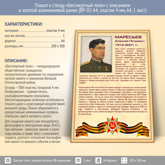Плакат к стенду «Бессмертный полк» с описанием в золотой (матовой) алюминиевой рамке (BP-02-A4, пластик 4 мм, А4, 1 лист) в Бердске купить