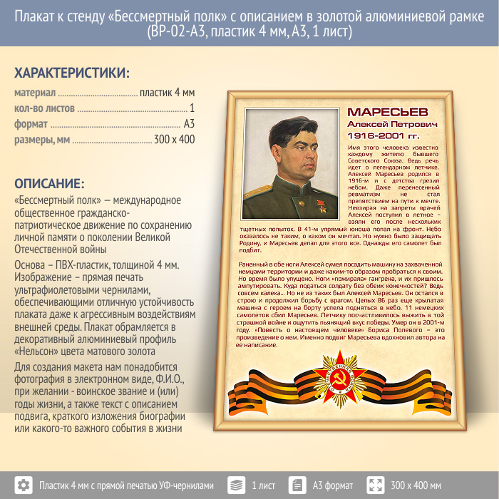 Плакат к стенду «Бессмертный полк» с описанием в золотой (матовой) алюминиевой рамке (BP-02-A3, пластик 4 мм, А3, 1 лист) в Бердске купить