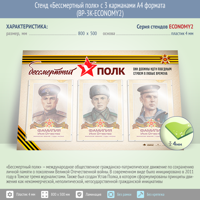 Стенд «Бессмертный полк» с 3 карманами А4 формата (BP-3K-ECONOMY2) в Бердске купить