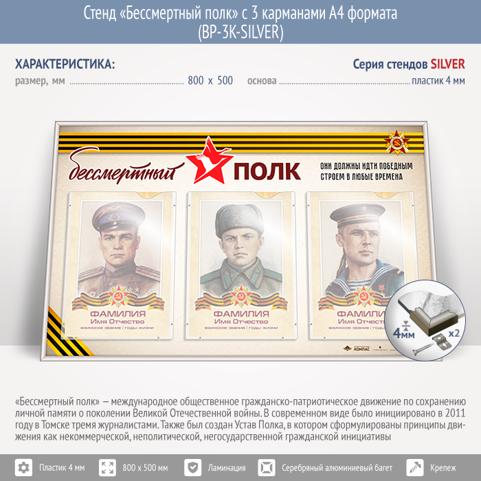 Стенд «Бессмертный полк» с 3 карманами А4 формата (BP-3K-SILVER) в Бердске купить