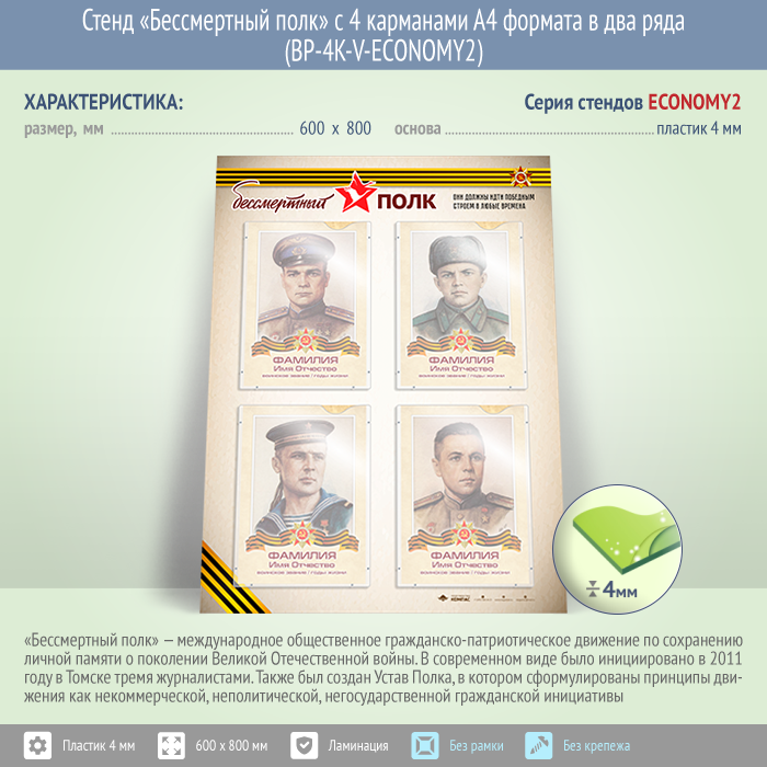 Стенд «Бессмертный полк» с 4 карманами А4 формата в два ряда (BP-4K-V-ECONOMY2) в Бердске купить