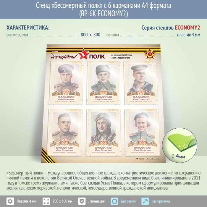 Стенд «Бессмертный полк» с 6 карманами А4 формата (BP-6K-ECONOMY2) в Бердске купить