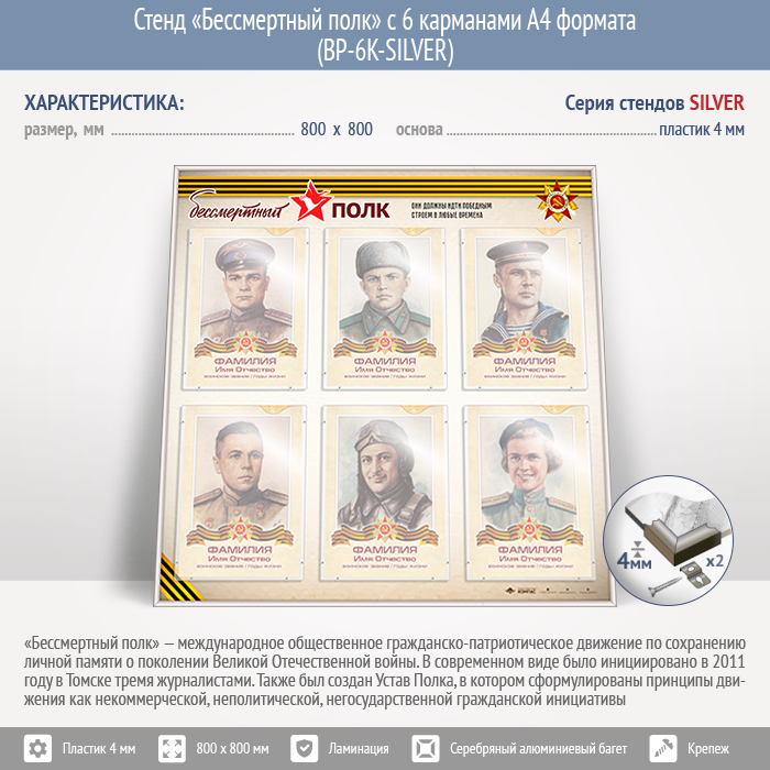 Стенд «Бессмертный полк» с 6 карманами А4 формата (BP-6K-SILVER) в Бердске купить