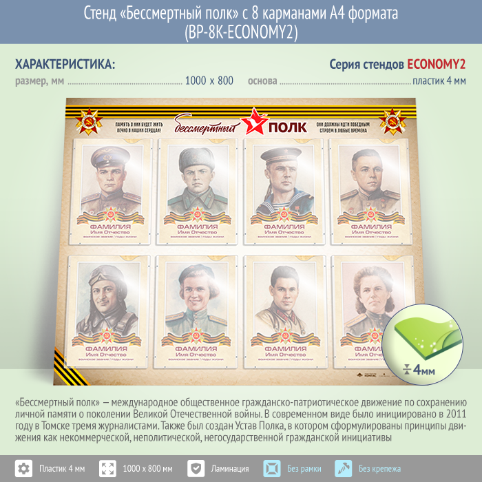 Стенд «Бессмертный полк» с 8 карманами А4 формата (BP-8K-ECONOMY2) в Бердске купить