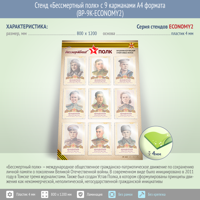 Стенд «Бессмертный полк» с 9 карманами А4 формата (BP-9K-ECONOMY2) в Бердске купить