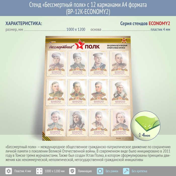 Стенд «Бессмертный полк» с 12 карманами А4 формата (BP-12K-ECONOMY2) в Бердске купить