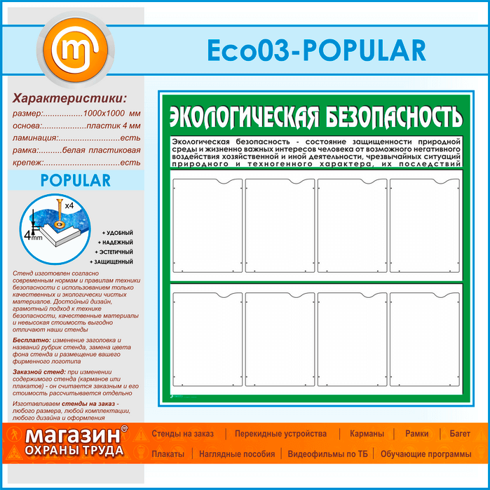 Стенд «Экологическая безопасность» с 8 карманами (ECO-03-POPULAR) в Бердске купить