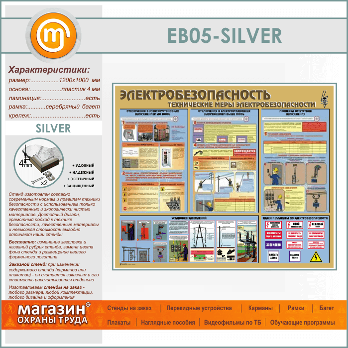 Стенд «Электробезопасность. Технические меры электробезопасности» (EB-05-SILVER) в Бердске купить