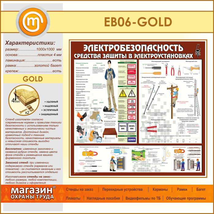 Стенд «Электробезопасность. Средства защиты в электроустановках» (EB-06-GOLD) в Бердске купить