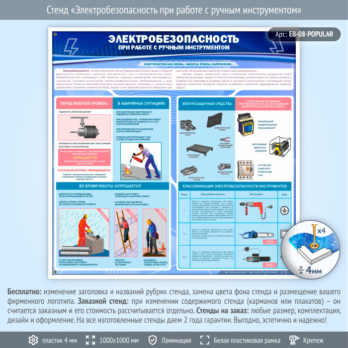 Стенд «Электробезопасность при работе с ручным инструментом» (EB-08-POPULAR) в Бердске купить