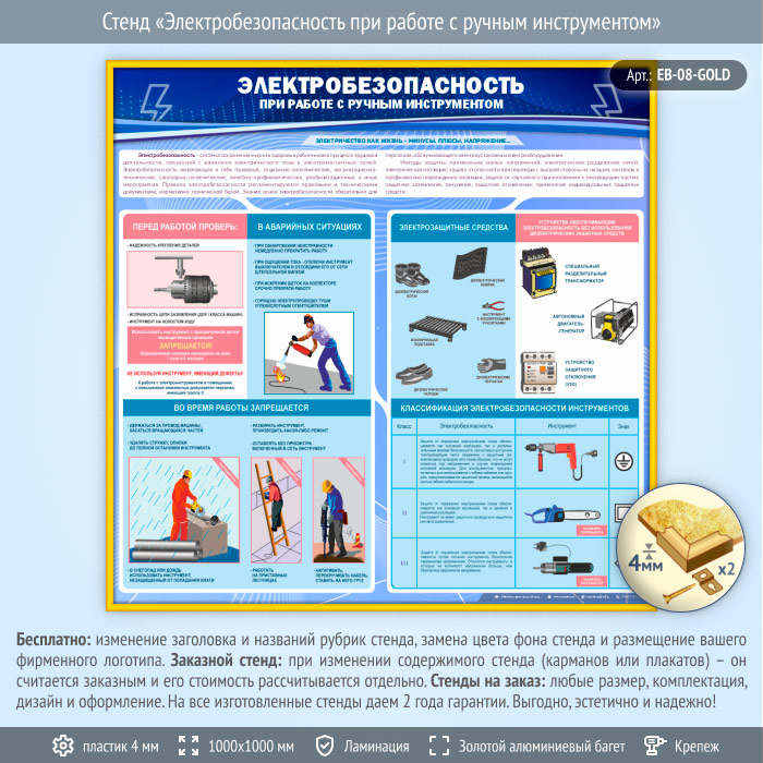 Стенд «Электробезопасность при работе с ручным инструментом» (EB-08-GOLD) в Бердске купить