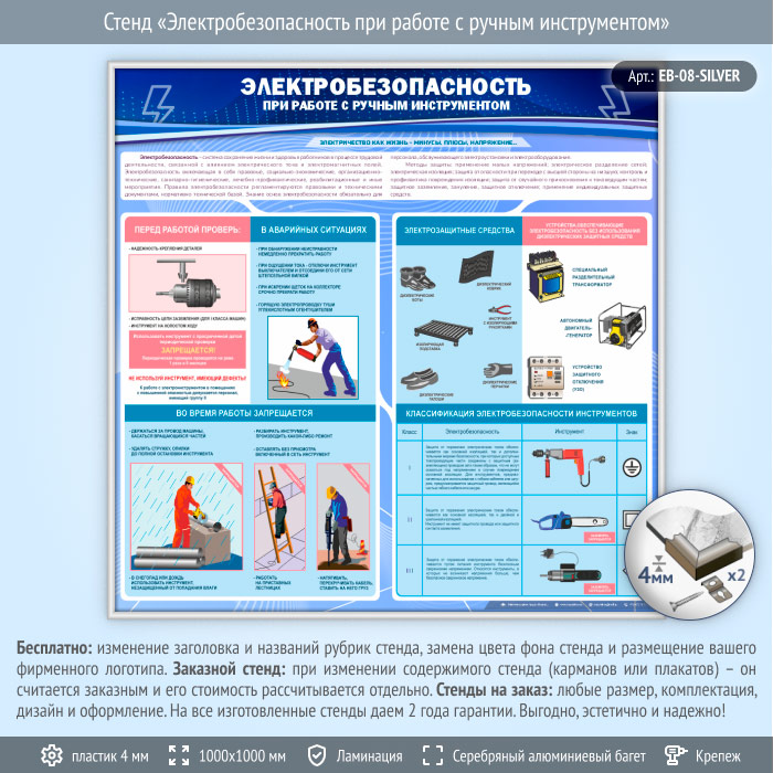 Стенд «Электробезопасность при работе с ручным инструментом» (EB-08-SILVER) в Бердске купить