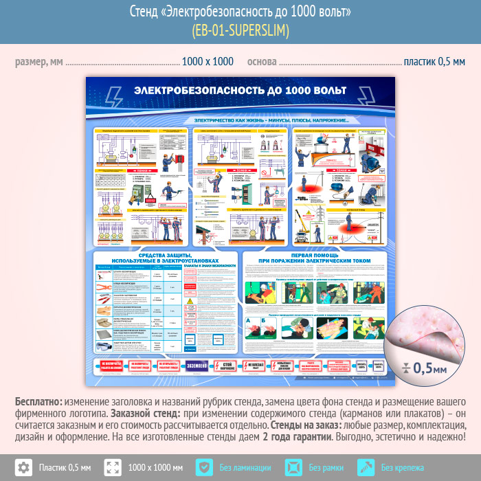 Стенд «Электробезопасность до 1000 вольт» (EB-01-SUPERSLIM) в Бердске купить