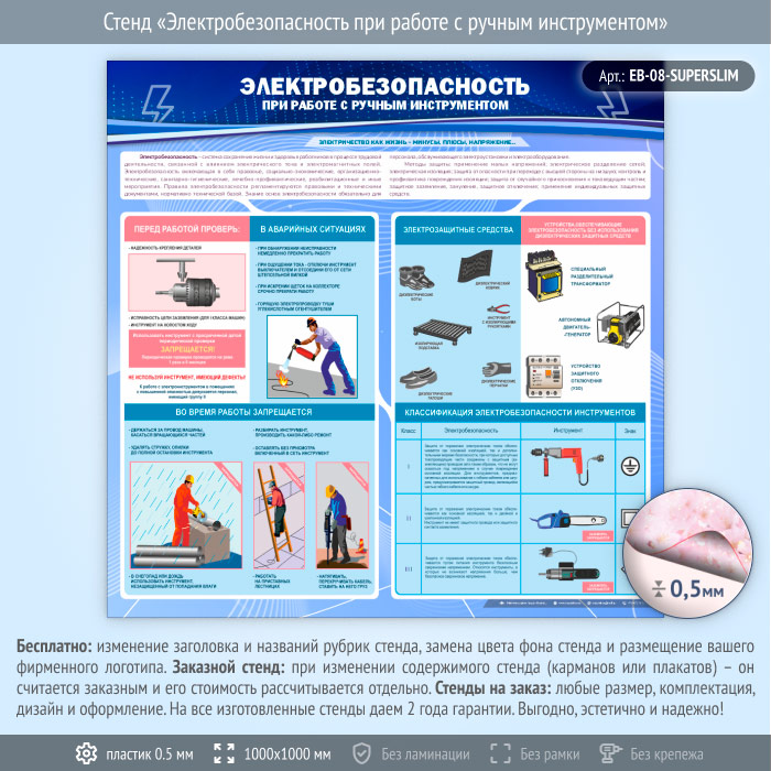Стенд «Электробезопасность при работе с ручным инструментом» (EB-08-SUPERSLIM) в Бердске купить