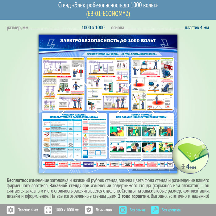 Стенд «Электробезопасность до 1000 вольт» (EB-01-ECONOMY2) в Бердске купить