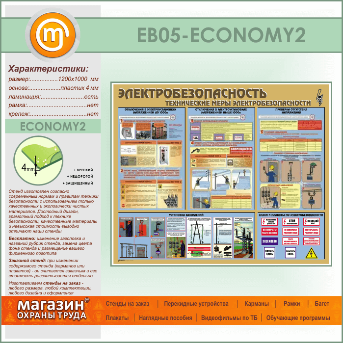 Стенд «Электробезопасность. Технические меры электробезопасности» (EB-05-ECONOMY2) в Бердске купить