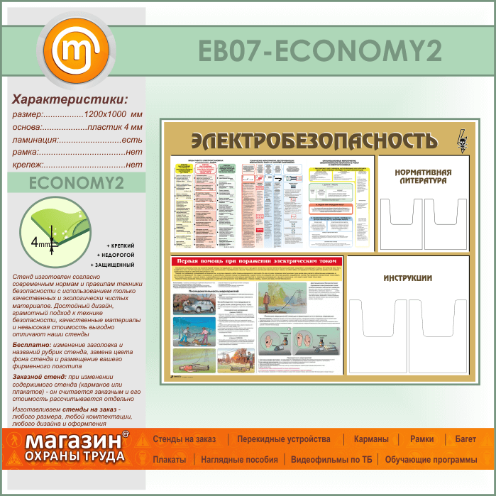 Стенд «Электробезопасность» с 4 объемными карманами (EB-07-ECONOMY2) в Бердске купить
