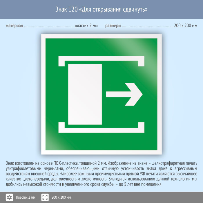 Знак E20 «Для открывания сдвинуть» (пластик, 200х200 мм) в Бердске купить
